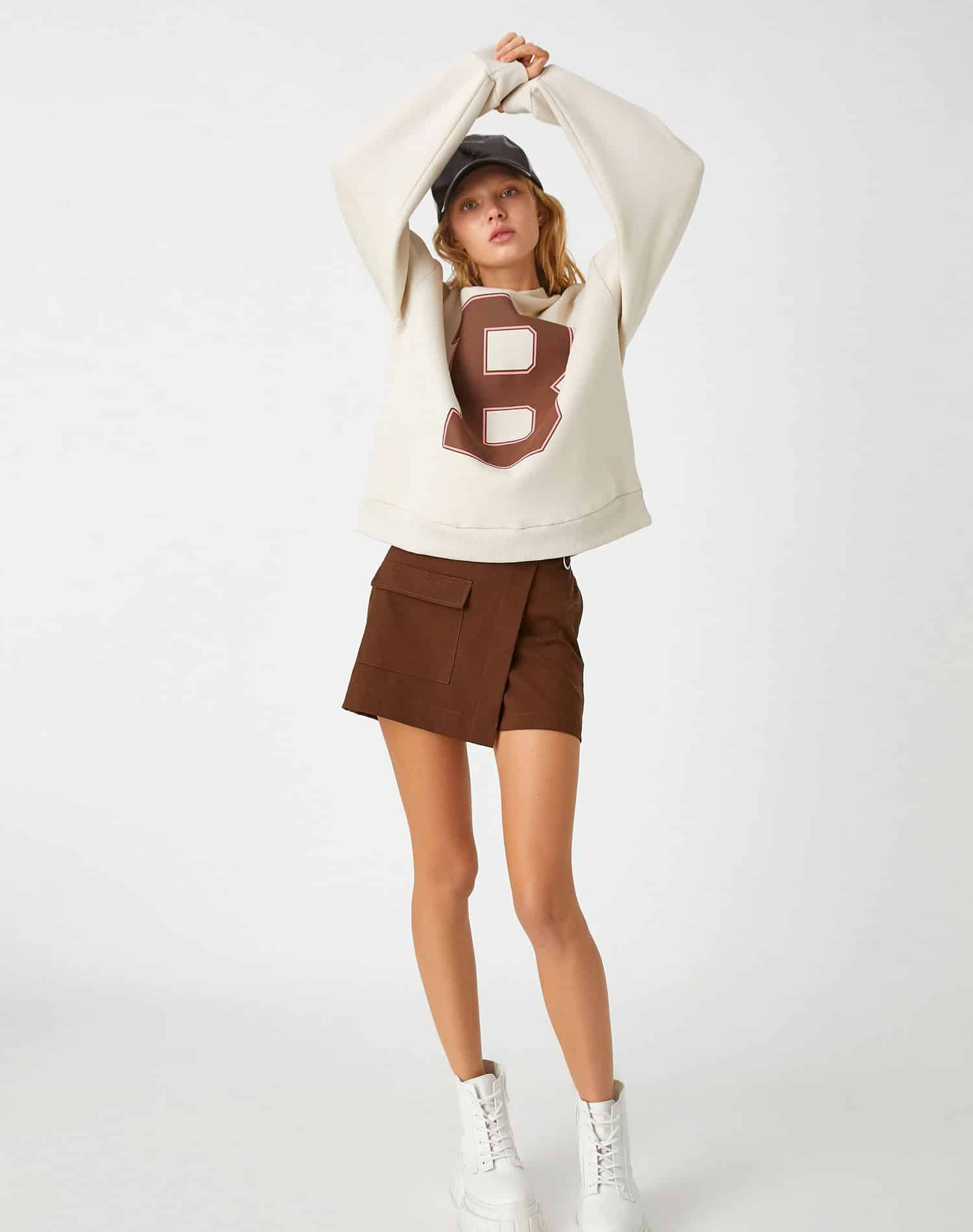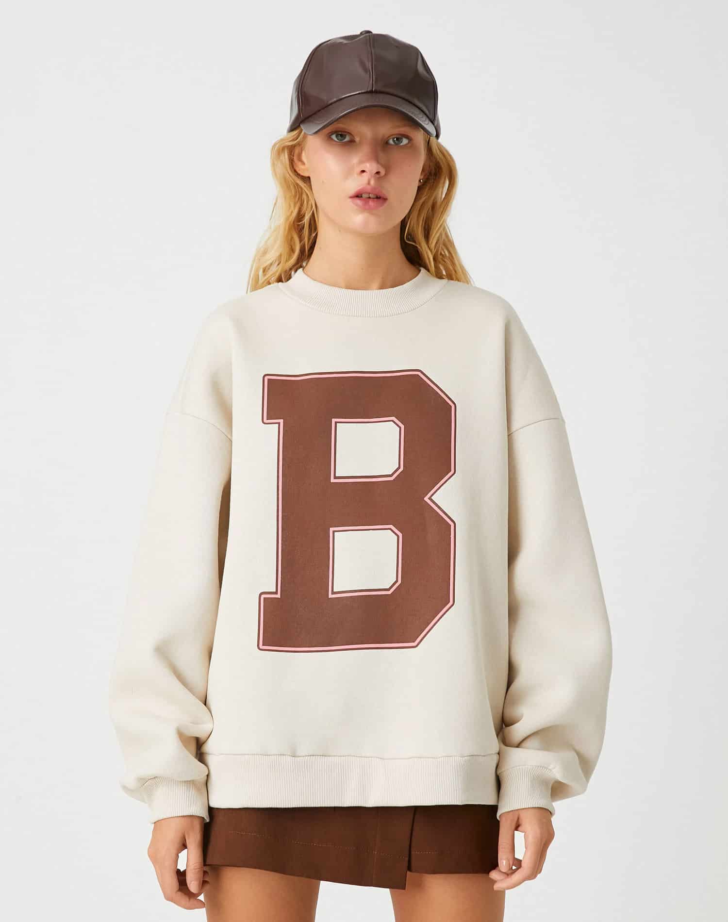 Printed College Sweatshirt Crew Neck Long Sleeve Fleece Inside